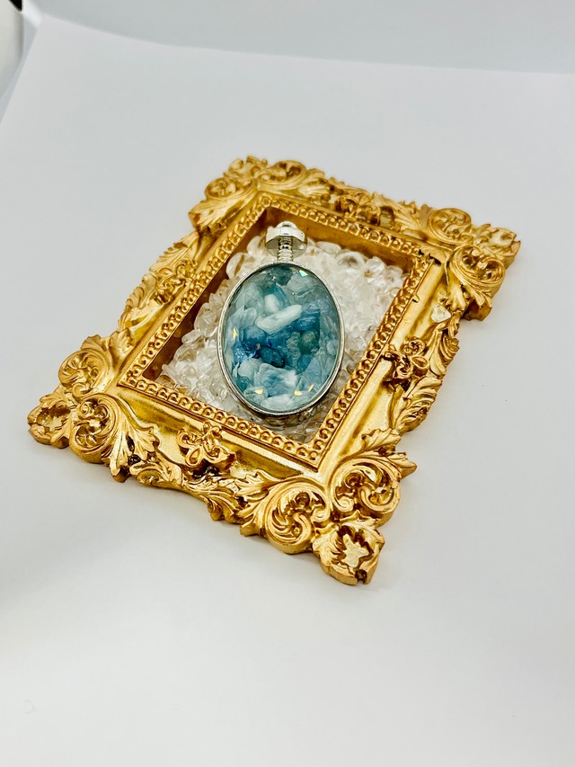 幸せ、永遠の若さ、富、喜び、勇気を象徴するアクアマリン。身につける人に若さとパワーを与えてくれます✨ また、コミュニケーション能力を高めるとされ、恋人とのすれ違いや夫婦の不和を解消したいと願うときにも効果を発揮してくれるので、幸福な恋愛や 結婚をもたらすほか、心身に本来の美しさと正しさを取り戻すといわれています♡ さらに困難におちいったときに希望の光を示してくれる石でもあります。旅行にも携帯すると、不慮の事故から持ち主の身を守るといわれています!! ブラジル産の高品質なさざれ石を使い 願望成就の念入れと神奈川県にある寒川神社にて ご祈祷後、浄化をした上でお届けいたします! *こちらはペンダントトップのみの販売となります。 チェーンや革紐のチョーカーなどお好みのものをご使用ください。 ・オーバル型 縦 : 約3.7cm 横 : 約2.7cm 厚さ : 約1.5cm <購入の際の注意点> ✩✩ご購入前に必ずお読み下さい✩✩ ★基本的にノークレームノーリターンでお願い致します。 ★ひとつひとつ丁寧に作っておりますがハンドメイド作品の為、既製品のような完璧さや強度はありません。 過度な力を加えると破損の原因となりますのでご注意ください。 左右の差が出たりゆがみや傷などがついてしまう場合がございます。 ご理解頂ける方のみご購入をお願い致します。 ★商品に使用している金属はメッキ加工となりますので、お肌の弱い方や金属アレルギーの方はご購入をお控えください。 また、メッキ加工の物は水や汗、長時間の放置で変色する場合がございますので大切に保管してください。 ★できるだけ実物と近い色での撮影を心がけておりますが、画像と実物で色やサイズが異なる場合がございます。 ★定形外郵便にて発送しておりますので、配達中の破損、紛失等のトラブルには対応できかねますのでご了承ください。