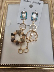 夜光貝、ラブラドライト、水晶の開運ピアス