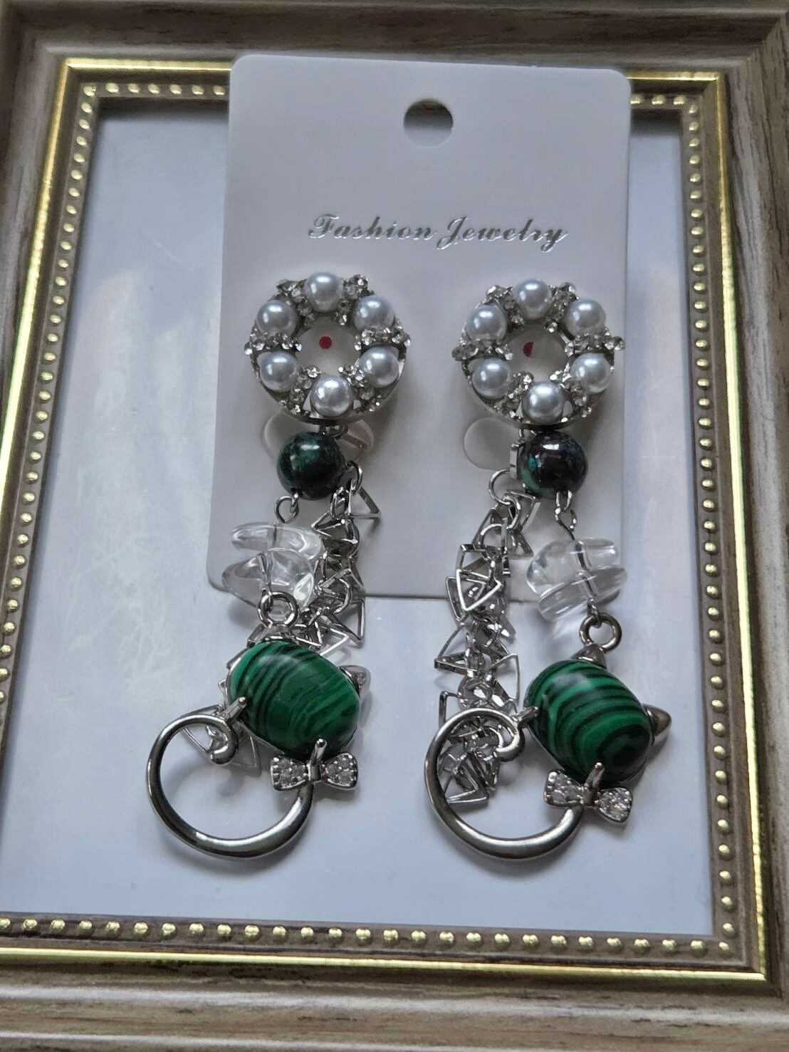 マラカイト、アズライトクリソコラ、水晶の開運ピアス♡