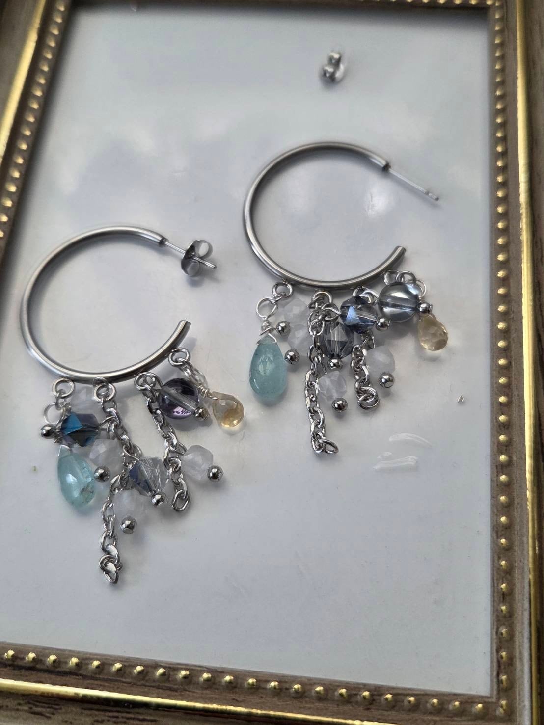 グリーンベリル、シトリン、ムーンストーンの開運ピアス♡