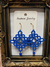 思考能力アップ❣️鮮やかなブルーのタティングレースとブルーメノウのピアス✨あい先生のタティングレースシリーズ
