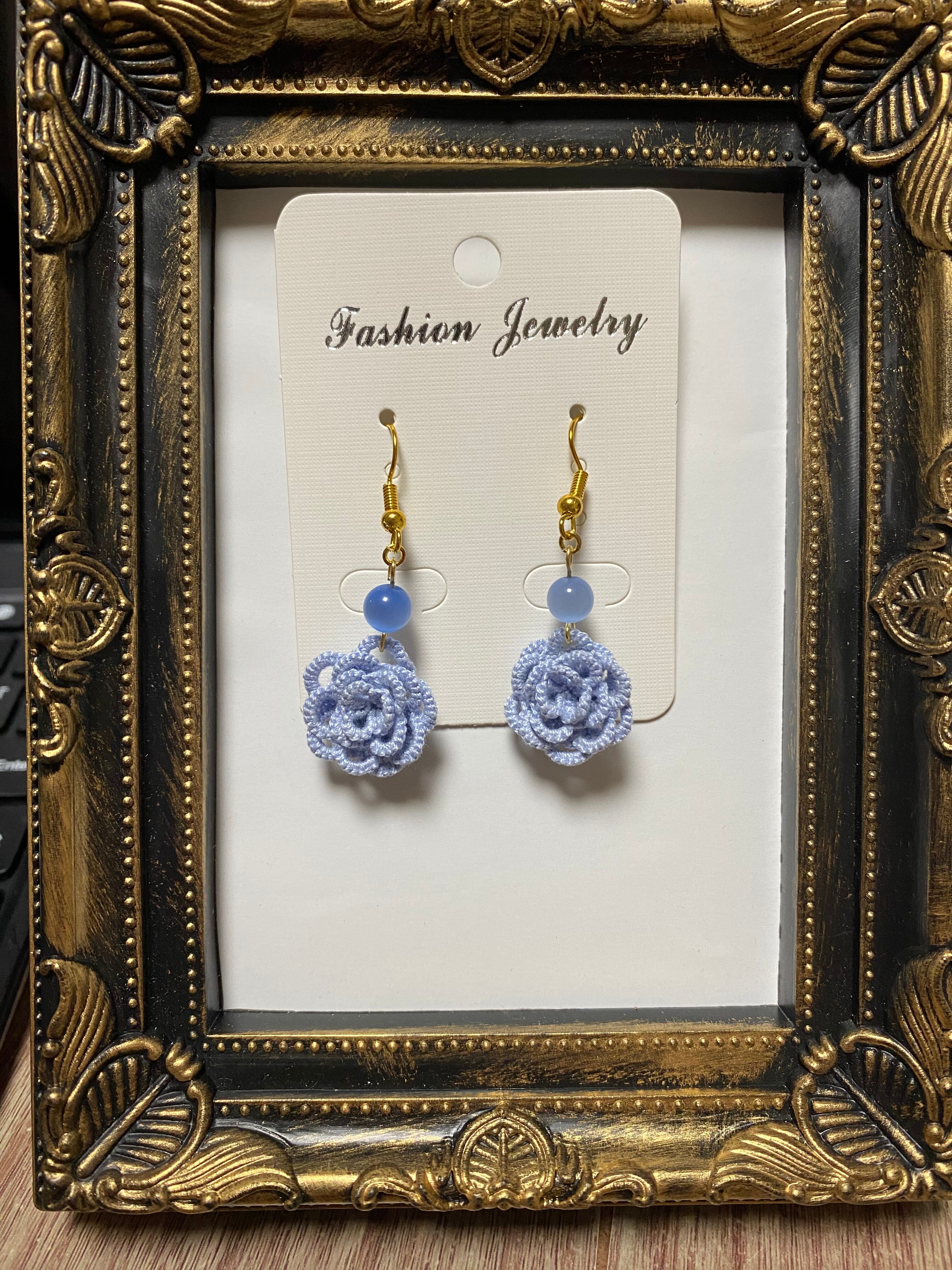 青い薔薇とキャッツアイのピアス✿あい先生のフラワーピアスシリーズ
