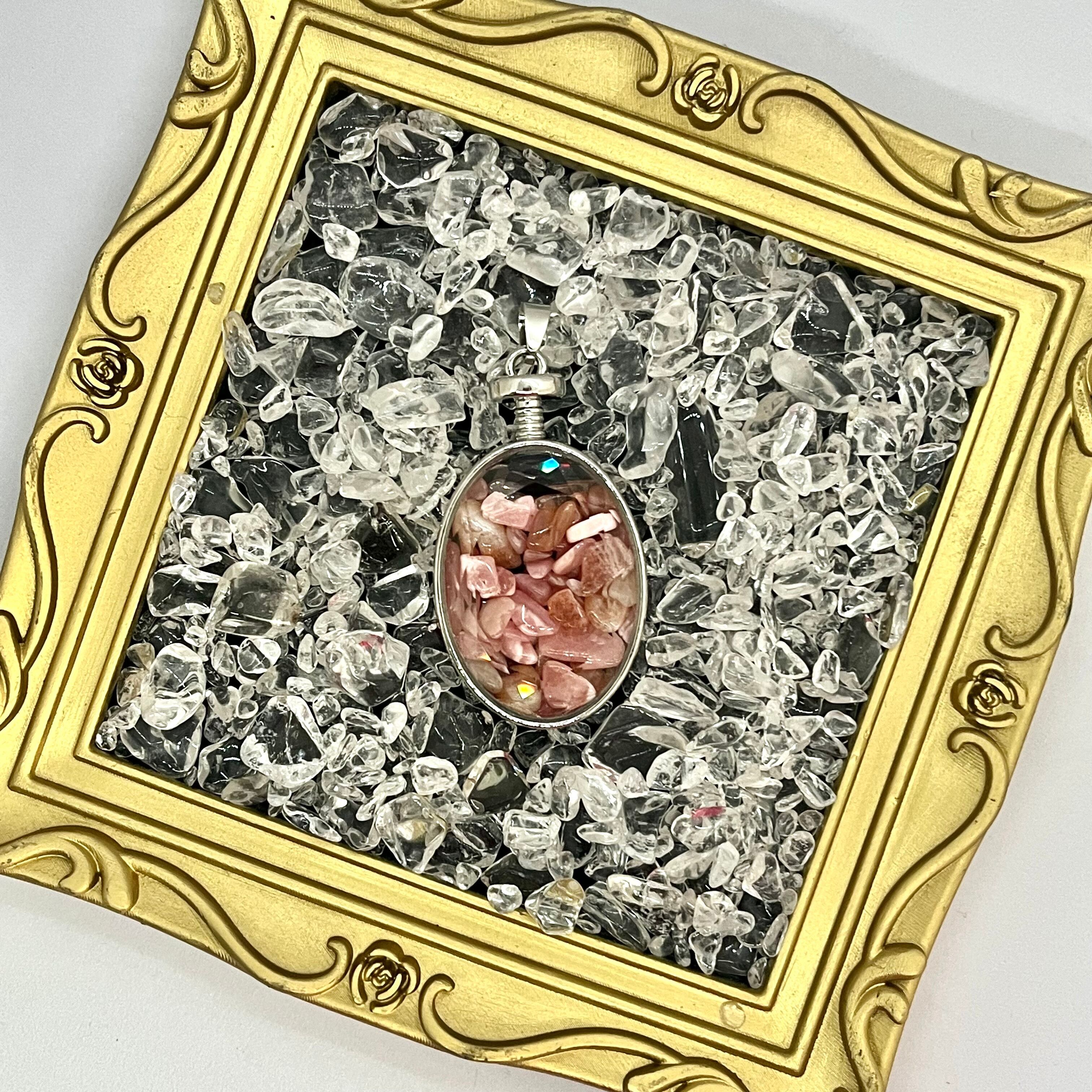 アルゼンチン産のインカローズと南インド産の高品質サンストーンのさざれ石をペンダントトップ