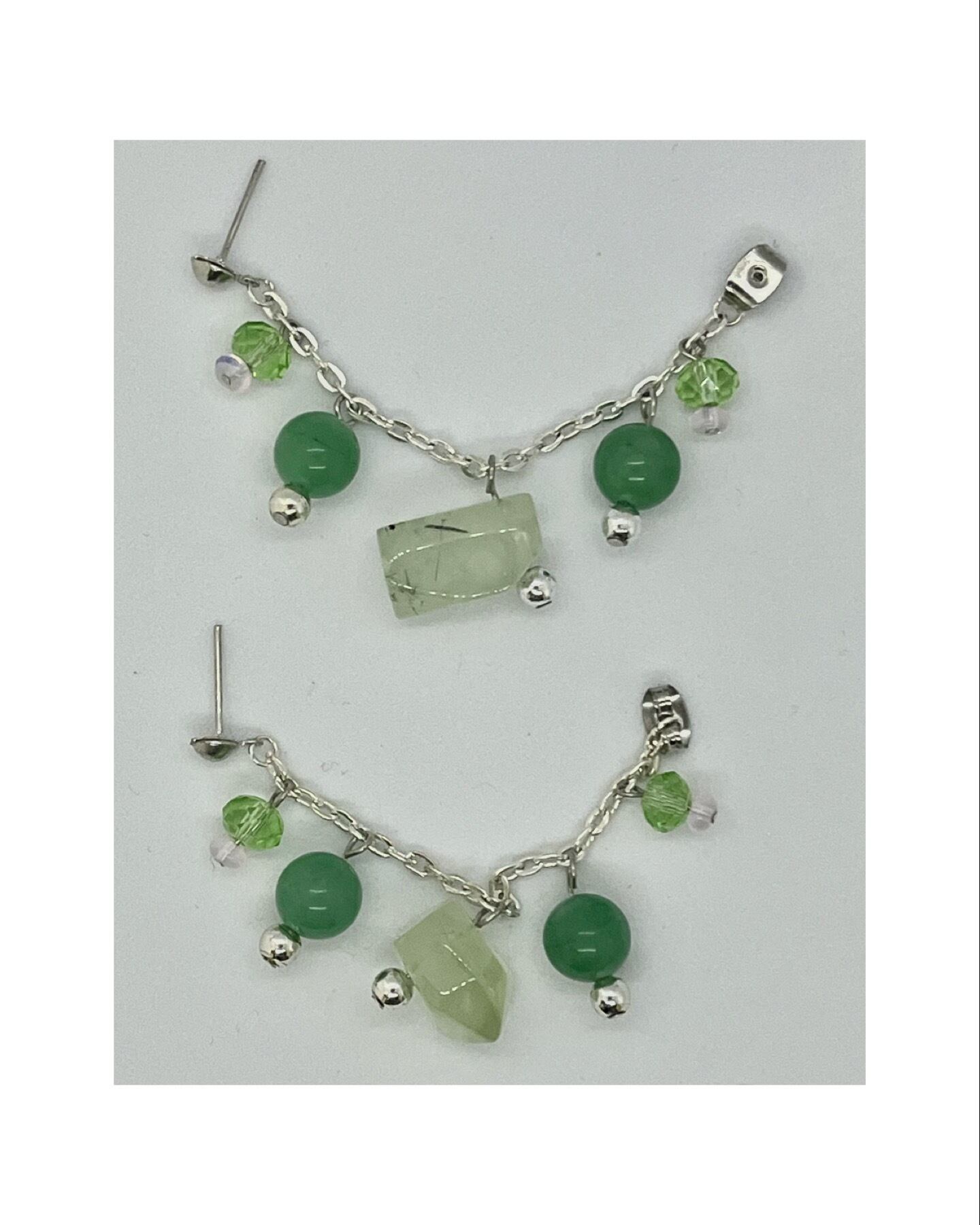 翡翠・ペリドットとプレナイトの美しい輝きが融合したピアスです。